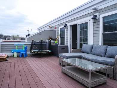 This flexible floor plan currently used as a 2 bed, with a versatile upper-level penthouse den/office that serves perfectly as a 3rd bedroom. Interior highlights include 2 gas fireplaces, central AC, laundry in-unit, and a primary suite featuring a large walk-in closet and spa-like bath with a jacuzzi tub. Step upstairs to a spectacular private roof deck complete with city views, a gas grill, and outdoor furniture that stays with the unit. Additional features include 2 car garage parking and private storage. Perfectly situated on a quiet one-way street just steps from South Boston's best dining (Lincoln, Loco, Hunter's) and minutes to the Red Line (Broadway/Andrew), Seaport, and M Street Beach. A true standout property offering the scale of a single-family with the convenience of condo living.