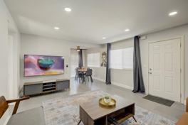 Unique and cozy fully furnished apartment in Huntington Beach in a prime location near The Huntington Harbour Area and Sunset Beach. Amazing designer updates to this 2-bedroom, 1-bath apartment that boasts an array of sleek finishes and thoughtful layout that makes your stay enjoyable. Short distance to Albertson, Trader Joe's, Starbucks, restaurants, Pacific City and Huntington Harbor Mall. The place features a good size private terrace, stainless steel appliances, quartz countertops, 65" TV, good size bathroom with bathtub and rain shower, and fully equipped kitchen. The apartment comes with one-car garage and plenty of free street parking.