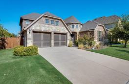 Spacious and beautifully updated 4-bedroom, 4-bath home with a 2-car garage, featuring hardwood flooring throughout the main living areas and fresh interior paint that creates a bright, modern feel. The open-concept kitchen is thoughtfully designed with rich espresso cabinetry, granite countertops, and stainless steel appliances, seamlessly connecting to the main living area anchored by a striking stone fireplace and custom built-in entertainment niche. The open kitchen offers espresso cabinetry, granite countertops, and stainless steel appliances, flowing seamlessly into the main living area with a stone fireplace and built-in entertainment niche. A dedicated home office and guest half bath add functionality. The downstairs primary suite features carpeted flooring, a spa-like bath with dual vanities, separate tub and shower, and a large walk-in closet. A secondary downstairs guest suite includes its own walk-in shower. Upstairs, enjoy an additional lounge and media room along with two guest bedrooms sharing a full bath. The open backyard and covered patio are fully enclosed by stained fencing - perfect for outdoor enjoyment. Located in Frisco ISD with easy access to grocery stores and major highways including 121 and the Dallas North Tollway.