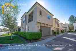 Beautiful two-bedroom, two-bathroom, two-story home located in the gated community of Villa Metro. The entrance hallway leads to a full bedroom with carpet flooring, a sliding glass door opening to a spacious patio, and an en-suite bathroom on the ground floor. As you ascend the carpeted stairs, you reach an open floor plan that includes the living room, dining area, and kitchen. The bright kitchen features a center island, granite countertops, white cabinets with brushed silver hardware, and essential stainless-steel appliances, including a gas stove, single oven, microwave, dishwasher, and refrigerator. There is a covered balcony accessible from the living area. Upstairs, you'll find another full bedroom and a full bathroom. The bathroom features dual sinks and a large walk-in shower. There is a convenient laundry closet upstairs with a stacked washer and dryer. Additional features a two-car attached garage and shutters throughout. Enjoy the resort-style community amenities, including a pool and spa, all conveniently located near restaurants and shopping. *The owner may consider a small pet.