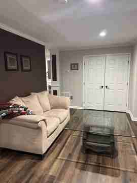 Newly furnished 2bed/1bath furnished basement apartment . Floors have been replaced, newly painted, all furnishings are new. Fully stocked kitchen with standard size stove, refrigerator, dishwasher and microwave. Washer and dryer, its own entrance with dedicated parking place. Property is on an acre of land. Looking to rent for $1800/month.