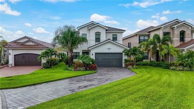 Experience luxury living in this stunning lakefront home in the highly sought-after Marina Bay community. Built in 2021 and beautifully upgraded throughout, this exceptional residence sits on a premium oversized lot and features one of the longest paved driveways in the neighborhood, offering both impressive curb appeal and added convenience. Inside, the home showcases a bright, modern open-concept design with upscale finishes at every turn, including oversized 24x48 porcelain tile flooring, sleek contemporary cabinetry, quartz countertops, premium appliances, custom fixtures, an extended pantry, solid core interior doors, frameless glass showers, oversized baseboards, upgraded interior and exterior electrical features, a whole-home water filtration system, hurricane impact windows and doors, and an advanced alarm system. The spacious primary suite serves as a private retreat with a spa-inspired bath featuring marble flooring, quartz countertops, and designer finishes. Step outside to enjoy peaceful lake views from the covered lanai, with plenty of backyard space to relax and unwind. Located in the amenity-rich Marina Bay community, residents enjoy a lifestyle of comfort, convenience, and resort-style living in one of the area's most desirable neighborhoods.