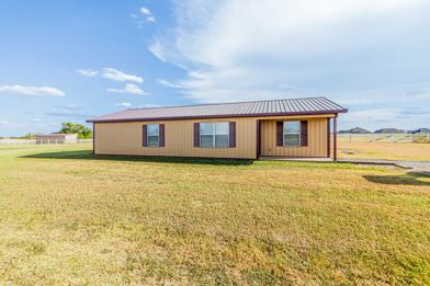 The home itself is built with a wood frame, metal siding, and a durable metal roof designed for long-term resilience. Inside, you'll find stained concrete floors with convenient amenities, including a washer and dryer, range, dishwasher, garbage disposal, and refrigerator.