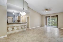 Welcome to this annual unfurnished rental in The Reserve at Naples, a vibrant community known for its convenient location and resort-style setting. This third-floor, 3 bedroom, 2 bathroom walk-up condo offers a bright and inviting interior with vaulted ceilings, fresh paint, carpet-free living with ceramic tile flooring, and a nice neutral palette throughout. The kitchen is appointed with light wood panel cabinetry, sleek granite-look counters, and stainless steel appliances. The primary bedroom features a walk-in closet, and the unit also includes a full-sized washer and dryer as well as a screened-in lanai for added comfort and everyday convenience.