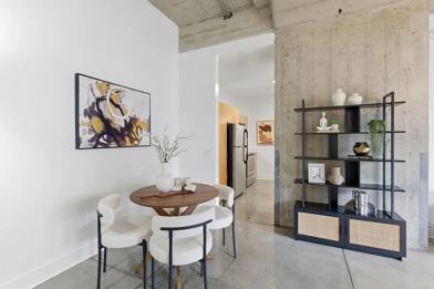 Industrial heritage meets modern luxury in this 954 sq ft 1BD/1BA San Francisco condominium. Blending bold historic character with refined Art Deco accents, the unit features 11-foot ceilings, polished cement floors with radiant heating, and northeast-facing warehouse windows framing views of sparkling modern high-rises.