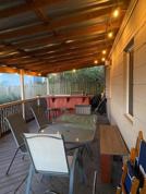 Covered back porch with string lighting
