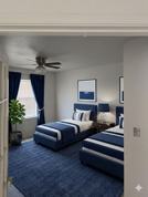 Furnished shared bedroom with private bathroom available in structured independent living home. Two beds in the room. Rent is per resident. Clean quiet environment designed for adults seeking stable housing.