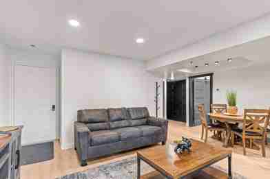 Living room: comfortable seating, gas fireplace, smart TV (use your own streaming logins), sleeper sofa for occasional guests