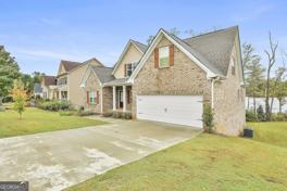 READY TO MOVE IN Gorgeous 3-Sided Brick Lakefront 5 Bedroom and 3 Full Bath Home in Desirable Bryant Lake Community. Popular "Leah" Floorplan with Unfinished Daylight Basement, Studded for Bath, and Epoxy-painted floor. Covered Front Porch and Back Deck. Panoramic Lakeview from all windows facing the backyard, Upgraded Hardwood Floor throughout the entire main level, including both the master bedroom and secondary bedroom on the main level. Master Suite on main with His and Hers Walk-In Closets, access door to the Laundry Room from one of the closets, Garden Tub, Double Vanity, Tiled Shower, and Guest Bedroom/Office with Full Bath on Main and 3 more spacious Bedrooms with a full bath w/Double Sinks Upstairs, Spacious Dining Room with Upgraded Wainscotting, All Upgraded Granite Countertops, Huge Kitchen Island, Wall Microwave and Oven, Beautiful gray-tone Cabinets, Stainless Steel Appliances, Separate Gas Range, Decorative Vent Hood, upgraded Backsplash, Vaulted Ceiling in Family Room, Breakfast Area that can fit Dining Table looking out the lake, Oversized Covered Deck right off Breakfast Area looking out Amazing Lakeview, So much Potential with Daylight Basement with Epoxy Painted throughout the entire floor, Extended Porch right off the basement perfect for storing your kayak/canoe, Direct Access to the lake from the backyard, Bryant Lake boasts amenities that include swimming pool, tennis court, playground, sidewalks, and shared doc to the lake. Minutes from I-85, hospitals, restaurants, shopping, and much more!