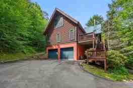 Additional amenities include wifi, central heating, air conditioning, a washer and dryer, and ROKU-equipped TVs. This property is pet-friendly, and two dogs are welcome with your reservation. Additional pet fees apply. The paved driveway has parking for two to three cars outside the lower-level garage. The long staircase from the parking area to the main level deck accesses the front entrance.