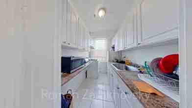 This unit features hardwood flooring throughout, a large foyer, a good-sized living room with bay windows and a closet, an updated bathroom with white tile, an updated kitchen with newer cabinets, countertops, and appliances. There is a spacious bedroom with a great view. The rent includes heat and hot/cold water, and there are laundry facilities, a fitness room