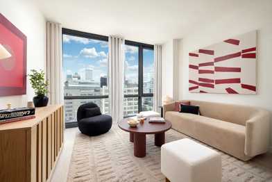 Sophisticated two-bedroom apartment with Manhattan skyline and bridge views. Located in Downtown Brooklyn. A close walk to the A,C,F,R,2,3,4,5,B, & Q trains.