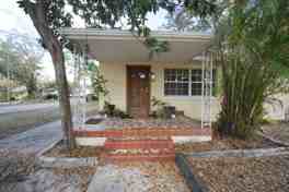 Located in the desirable Riverside Estates area, this charming 2-bedroom, 1-bath single-family home offers 912 square feet of comfortable living space on a large corner lot. The home features tile flooring throughout and a welcoming front porch next to beautiful areca palms that add tropical charm. The kitchen is equipped with white cabinets and appliances, including a stove, microwave and refrigerator, and the home also includes a convenient laundry closet. Outside, you'll find spacious side and backyard areas along with a large utility shed, providing plenty of room for storage, outdoor activities, or gardening. Lawn care and trash service are included in the rent. Pets OK. No HOA. Prime location close to the Hillsborough River, this home offers both comfort and convenience. Enjoy easy access to nearby parks, shopping centers, restaurants, and major roadways, making commuting and everyday errands simple and convenient.