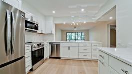 - Fully equipped kitchen with a refrigerator, electric range, and dishwasher