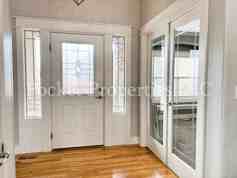 Well-maintained 2950 square foot two-story rental home on a corner lot of a cul-de-sac with mature landscaping, perfect for comfortable indoor/outdoor living. This property has 5 bedrooms, an additional office space and 3.5 bathrooms. The kitchen has plenty of cabinets and pantry storage space, with a dining area nestled next to large windows that overlook the backyard. Stainless steel appliances, solid surface counter tops and a double oven complete this open-concept kitchen. Large windows in the living area bring in natural light that is further highlighted by the vaulted ceilings. The gas fireplace in the living space next to the kitchen makes it cozy and inviting. All bedrooms have large closets with built-ins. Four bedrooms are upstairs, sharing two full bathrooms. All bathrooms have been recently updated, with matching cabinets, solid surface countertops and lighted mirrors. One of the upstairs bedrooms is oversized and could easily be used as a second living space. The downstairs master bedroom suite has an oversized walk-in closet with built-ins. The master bathroom has dual vanities with a jetted tub, walk-in shower and separate toilet room. The master bedroom also has a backyard access sliding door. Separate laundry room and/or mudroom with an entrance from the garage. Three car garage and ample parking in the driveway. The third bay of the garage has a 10-foot-tall door and is 37 feet deep with a backyard access second rear garage door. Fully fenced yard with back patio. Permanent Christmas lighting has been installed for your year-round use. The property is also equipped with a full surveillance system that does not require a subscription. Property is in a quiet neighborhood near Meridian Rd and Victory Rd, just a 10-minute drive to downtown Meridian and 20-minute drive to downtown Boise. Central air conditioning and heat.