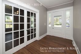 This 1 Bed/1 Bath apartment is one-half of a gorgeous, historic home in Burlington. As you face the front of the house, the "A" side apartment is on the right and can be accessed through the main door in the center of the front porch or from the back, right-side of the house. Entering from the front porch will bring you into a long foyer, which could also be used as an office or could even make a great location for exercise equipment. From there, original French doors lead into a large living room, with a gorgeous, original wood ceiling and fireplace. The fireplace is not usable, but adds loads of character and charm to the room. Next is the bedroom--also quite roomy--with the bath attached. The bathroom has a shower only. The eat-in kitchen comes complete with stainless steel appliances, a nice-sized pantry, stained cabinetry and convenient washer/dryer connections. Recently refurbished, the flooring, light fixtures, and appliances are all new. Residents will have shared use of the front porch and a sturdy outside storage shed. Lawn maintenance is included.