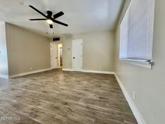 Recently remodeled 2-bedroom, 1-bath duplex in El Paso offers tile flooring throughout, refrigerated air, ceiling fans, and window coverings for comfortable living. The layout includes a breakfast area and a covered patio that extend usable space. A single-car garage provides secure parking, and the location offers easy access to I-10 and proximity to El Paso Airport. This duplex combines updated interior finishes with convenient transportation links.