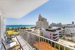 Enjoy stunning ocean views from this beautifully designer-remodeled 1-bedroom residence, featuring high ceilings and a private balcony that fills the space with natural light. A block from Ocean Drive