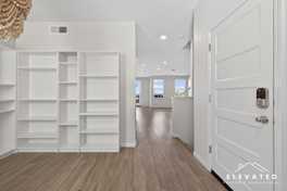 Enter through the front door into a spacious entry that leads to the main living level. Here, an open concept layout connects the living room and kitchen, filled with natural light. The living area opens to a private balcony with views over Petaluma, creating a seamless indoor-outdoor flow. This level also includes a convenient half bath, a coat closet, and direct access to the garage. The kitchen is well-appointed with quartz countertops, a large island, stainless steel appliances, a smart refrigerator, and generous cabinetry and pantry storage, designed for both everyday living and casual entertaining.