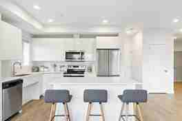 This move-in ready home includes a stylish kitchen with island, full appliance package (fridge, stove/oven, dishwasher), two spacious bedrooms, two full bathrooms, in-suite free laundry, window coverings, and tasteful furnishings throughout.