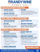This home is exclusively offered by Brandywine Homes USA on a first-come, first-approved basis until the lease is signed and the security deposit is paid. Rental Qualifications: www bwhusa com qualifications Rental Fees: www bwhusa com fees Security Deposit: Varies based on credit, with a standard deposit equal to 1 month's rent. Security Deposit Alternatives available - $150 fee (subject to approval). Additional mandatory fees: $60 application fee per applicant, $100 lease admin fee, and $25 Empower Program fee. Additional fees may apply, including $30 for smart home services, $175 for pool maintenance, and charges for pet fees, self-guided tours, and RBP Premier insurance. Brandywine Homes USA is an Equal Housing Lessor under the FHA. Lease terms apply. Photos may feature models and virtual staging. BEWARE OF LEASING FRAUD