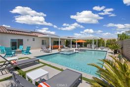 Outside, your own private resort-style backyard featuring a sparkling pool and spa, expansive paved concrete patio, and a built-in BBQ area, perfect for hosting or relaxing under the covered patio. The outdoor space is designed for year-round enjoyment with multiple seating and lounging areas.