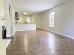 Spacious downstairs quad unit featuring 2 bedrooms and 1 bathroom. This home offers wood-look LVP flooring throughout, ceiling fans in both bedrooms, and convenient access to the back patio from both the kitchen and the primary bedroom.
