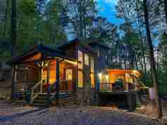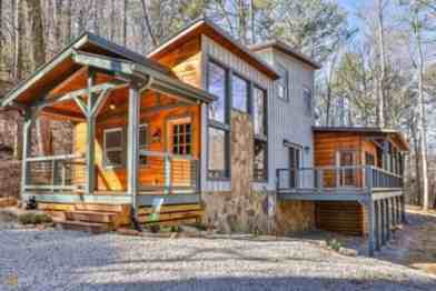 The cabin is fully furnished but the owner is willing to remove for one year or more lease. This cabin-in-the-woods is located in the Coosawattee River Resort nestled in the heart of the North Georgia Mountains. The covered front porch welcomes you into a stunning great room that features soaring floor-to-ceiling windows, offset by a modern stacked stone fireplace. The adjoining kitchen offers an L-shaped quartz countertop with wood grain cabinetry and SS appliances. The kitchen expands into the main dining area or slip outside to enjoy dining al fresco style nestled among trees. A separate living area is setback, positioned away from the great room to offer a place of solitude. This multi-generational cabin features a main-level bedroom with a full bath and a walk-in shower. Two spacious bedrooms with vaulted ceilings are located upstairs. Enjoy natures tranquility under the covered back porch, soaking in the sunken hot tub or unwind in front of the stacked stone fireplace complete with a media center. Can be used as a turnkey investment property w/ 94-five-star reviews.