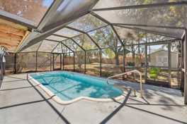 3/2 pool home on an oversized .27-acre lot. Huge fenced backyard with two sheds. Screened pool and large patio, ideal for relaxing or entertaining. Bright great room with bay window and sliders to the pool. Tile throughout. Split bedroom layout. Upgraded Kitchen with two pantries. Impact windows for comfort and peace of mind.