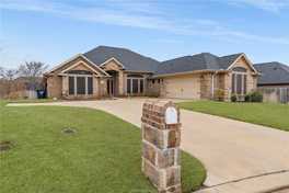 Discover this beautifully updated 5-bedroom, 3.5-bathroom home with a dedicated study perfectly situated on an oversized cul-de-sac lot in desirable South College Station. Zoned to College Station High School, this spacious property offers a 3-way split floor plan with raised ceilings, granite countertops, stainless steel appliances, eating bar & abundant kitchen storage. The open-concept living area flows seamlessly into the breakfast nook & a private study with French doors. The primary suite offers an oversized shower, garden tub, dual vanities & a large walk-in closet. Every bedroom includes a walk-in closet & the 5th bedroom offers a private en-suite bath. Enjoy outdoor living in the large backyard with covered patio, extended flagstone area & fire pit. Inside, you'll also find an oversized laundry room with built-in cabinetry & a sink. Additional features include tray ceilings, crown molding, 2-inch blinds, a sprinkler system with updated zones & controls. Other updates include new roof in 2023, new water heaters in 2022 and 2023, new AC condenser in 2023 & new air handler in 2025. All carpet has been replaced & the kitchen, half bath & laundry room feature new flooring. Fresh sod has been installed in the front & back yard. The home also includes all new plumbing fixtures & updated lighting fixtures in the kitchen and primary bathroom. Located just minutes from top-rated schools, shopping, restaurants, and more, this home is move-in ready and truly has it all.