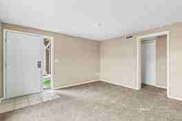 Natural light, practical flow, and clearly defined spaces shape this 3-bedroom, 2.5-bath home in Aurora, CO. Its living room offers enough space to arrange seating for conversation or a media setup, with carpeted flooring adding a soft, grounded feel. Wall space supports flexible furniture placement, and the overall layout allows for easy movement between areas.