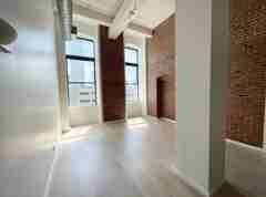 Beautifully renovated bi-level 2-bedroom, 2-bathroom apartment located in the heart of Center City, available 7/10. The unit features light oak hardwood floors, a modern kitchen with stainless steel appliances, and central air and heat. The spacious living and dining areas offer high ceilings, a stylish exposed brick accent wall, and excellent natural light from south-facing windows.
