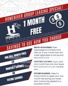 *The estimated total monthly leasing price does not include utilities or optional/conditional fees, such as: pet, utility service, and security deposit waiver fees. Our Resident Benefits Package includes required Renters Insurance, Utility Service Set-Up, Identity Theft Protection, Resident Rewards, HVAC air filter delivery (where applicable), and Credit Building, all at the additional monthly cost shown above. To learn more about additional leasing fees and requirements, please contact HomeRiver Group.