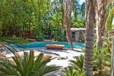 A taste of the South Pacific in Palm Springs! One bedroom, one bath unit with in unit laundry. Kitchen features refrigerator, dishwasher and microwave. Available April 15.