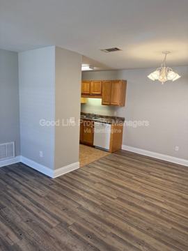 This spacious townhome offers comfortable living with plenty of room to make it your own. Brand-new luxury vinyl plank flooring runs throughout the main living areas, complemented by plush new carpet in the bedrooms. The kitchen features warm wood cabinetry, dark countertops, and a full appliance package including refrigerator, range, microwave, and dishwasher — everything you need from day one. Both bathrooms are clean and functional, with updated fixtures and plenty of vanity space.