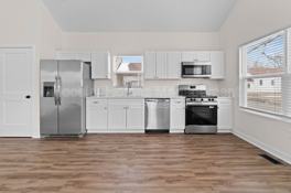 Unit A features a bright and spacious living area with fresh paint, updated flooring, and stylish finishes throughout. The renovated kitchen includes modern cabinetry, updated countertops, and ample storage space—perfect for everyday living and entertaining.