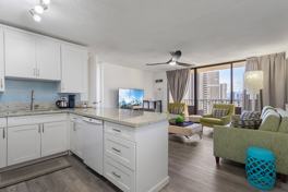 Fully furnished, utilities included! Experience luxury island living in this beautifully renovated 1-bedroom, 1-bath condo on the 30th floor of Chateau Waikiki. Enjoy stunning ocean and city views with sunset vistas from your private lanai. The unit features a king bed, full kitchen, in-unit washer/dryer, central AC, and a dedicated workspace—perfect for remote workers, traveling professionals, or anyone seeking a move-in-ready, comfortable home.