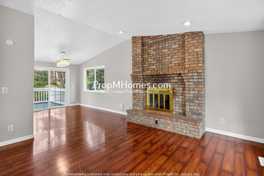 -Bright living room with hardwood floors and decorative fireplace (not for tenant use)