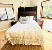 The bedrooms are thoughtfully designed, including a stunning primary suite with vaulted ceilings and a serene, retreat-like feel. Bathrooms have been updated for comfort and convenience, and the home also includes an in-unit washer and dryer.