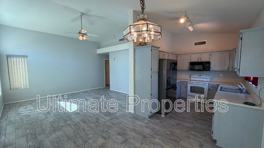 2 bedroom + 2 Bath in Sun Village age restricted community 55+. Kitchen features stainless steel refrigerator, range/oven, built-in microwave and dishwasher. Washer and dryer are also included. Tile flooring throughout. Both bedrooms have full bathrooms. Walk in closet in the master. Private covered patio with exits from the dining room and master bedroom. Sun Village is a 55+ guarded-gated community with golf, tennis, shuffleboard, pickleball, dining, clubs and more. Water, sewer and trash is included. 1 assigned parking space.