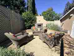 This home has been significantly enhanced with a brand new private outdoor space including a wrap-around flagstone patio enclosed by a beautiful custom redwood fence with lockable gates. This creates a level of private outdoor living that is truly rare in San Jose rentals and offers more outdoor space than most custom homes in San Jose. It features a fireplace seating area perfect for gatherings, lush raised gardens maintained by a gardener at no cost to you, and fruit trees including lime, Santa Rosa plum, and persimmon.