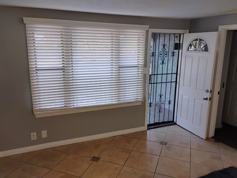 Quaint unit fully renovated. Tasteful colors, with a Spanish flair, windows (with blinds)in every room allowing for natural light, large carpeted bedroom, modest bathroom with plenty of storage, large closet space, tiled front room with wall heater, tiled kitchen and dining room, with wall A/C, required appliances, modern overhead ceiling/light fan in the dining room. Spacious and inviting balcony with pull down sun shade. Large shared community space with large storage bin.