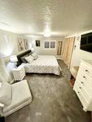 Welcome to a peaceful fully furnished 1,100 s.f. private basement suite in a quiet single owner-occupied meticulously maintained home located in the heart of the Salt Lake Valley. This space is thoughtfully set up for traveling professionals who want comfort, privacy and restful sleep after long hours. Suite includes a large bedroom with a king size hybrid memory foam bed, large closet, 6 drawer dresser, plus a 44" TV, full bath, living room with a dedicated workspace/desk and a 65" TV, kitchenette and dining area, shared laundry room with RO drinking water faucet, in-garage secure parking with opener, access to shared hot tub and beautiful backyard oasis and large covered patio. Garage access to basement stairwell is only about 3 steps so it's pretty private and direct. Privacy is respected and considered a top priority. Homeowner is retired and has 3 dogs and 2 cats so if you have pet allergies or an aversion to animals this may not be a good fit for you. The dogs do not go into the basement, but the two senior cats do so the bedroom door is kept shut at all times to restrict their access to the bedroom. Home is 25 minutes from beautiful Wasatch Mountain canyons, 10 minutes to Jordan River Pkwy and 35 minutes to world-class ski resorts.