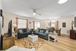 Live The Villages lifestyle full-time in this move-in ready, fully furnished annual rental—just a 4-minute golf cart ride to Brownwood Town Square for dining, shopping, and nightly entertainment! Features & Highlights: