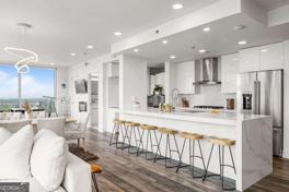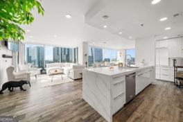 In the heart of Buckhead, this fully renovated and designer furnished one bedroom residence offers a refined take on elevated city living. Clean modern lines, curated designer finishes, upgraded lighting, and brand new appliances complement an open living and entertaining space that feels both sophisticated and effortless. A private balcony extends the living experience outdoors, offering the perfect setting for an evening cocktail with glittering skyline views. Residents enjoy an exceptional lifestyle defined by five star amenities including a Sky Bar with sweeping 270 degree views, a saltwater pool with seasonal poolside service, a state of the art fitness center, mirrored yoga studio, clubroom, private massage room, and a full service spa in the lobby. Additional features include 24 hour concierge and doorman service, a private wine locker, a landscaped park with fountains, and a pedestrian bridge providing direct access to MARTA, all moments from Buckhead's premier dining and shopping. Two assigned parking spaces are included with the lease.