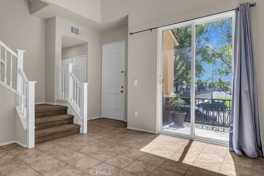 Charming and bright split-level townhome located in one of the premier interior locations within the gated Collage community of Northwood Pointe. With no homes directly across the street, this residence offers peaceful views of open greenbelt and Meadowood Park. The living room features soaring cathedral ceilings, abundant natural light, and a cozy fireplace. Fresh interior paint and ceramic tile flooring enhance the main living areas. The upgraded kitchen includes white cabinetry, quartz countertops, and matching backsplash, opening to the dining and family room on the second level for an inviting, open-concept layout. A built-in desk on the stair landing provides a convenient study/work area, and the upstairs laundry is ideally located near both bedrooms. The primary suite offers a walk-in closet, en-suite bath with vanity, and linen storage. The secondary bedroom is also en-suite with its own full bathroom. Residents enjoy beautifully maintained grounds with tree-lined walkways, community pool and spa, and access to the Northwood Pointe Olympic-size pool. Zoned for highly rated Irvine Unified schools including Canyon View Elementary and Northwood High School. Close to parks, trails, shopping, and convenient access to I-5 and local toll roads.