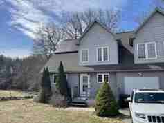 2.5 bedroom townhouse featuring a desirable first-floor primary suite with walk-in closet and private bath with separate shower. Enjoy the convenience of first floor laundry and a welcoming two story entry foyer. The main level offers an open-concept layout where the kitchen, dining, and family rooms flow seamlessly together, highlighted by cherry finished cabinets and a stunning vaulted ceiling in the family room. Step out to the deck overlooking a peaceful wooded setting. Upstairs offers two spacious bedrooms and a full bath. A full basement with sliding glass doors provides direct backyard access. Ideally located near I-395 and the Mass Pike in Auburn.