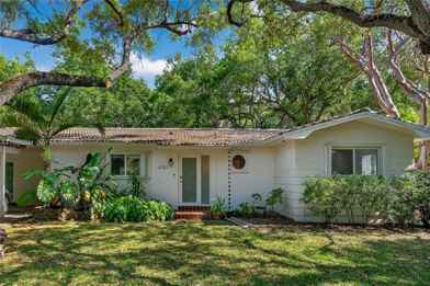 Hidden among the trees and incredible landscaping is a very warm and cozy ranch style home ready for you. Located on a dead end street gives you total privacy. The yard and area is a must see. Backs up to the Nature Preserve. Large open kitchen, living room/great room. Quartz counters, island, cabinets with multiple drawers and lots of space for a family of chefs. Separate dining area and a breakfast nook or sitting area. Tiled throughout, and wooden floors in dining area plus one bedroom, laminate in other bedrooms. Large laundry room in the big work shop/storage area with separate entrance. Easy to show, call LA for Supra info. Yard maintenance included in rent. Mango trees on the property.