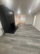 The home offers a spacious, open feel with fresh interior paint, new windows, and beautiful laminate wood flooring throughout. The inviting living room features a decorative fireplace and flows easily into a dining or breakfast area adjacent to the kitchen.
