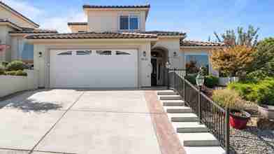 The upper level contains two more bedrooms, a guest bathroom, and a second living area that provides extra space for relaxation or hobbies. Outside, the property includes a two-car attached garage and a fully fenced back patio area designed for year-round enjoyment. The outdoor space features a partially covered patio with a retractable awning and a private hot tub, perfect for unwinding in the evenings. This home is situated in a prime location with easy access to local schools, dining, and shopping.